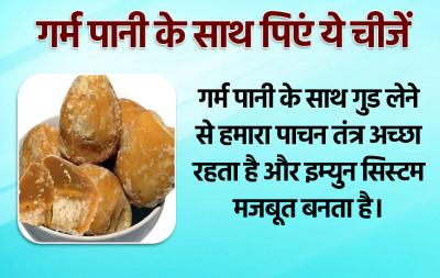गर्म पानी के साथ गुड लेने से हमारा पाचन तंत्र अच्छा रहता है और इम्युन सिस्टम मजबूत बनता है।