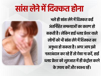 भले ही सांस लेने में दिक्कत कई अंतर्निहित समस्याओं का कारण हो सकती है। लेकिन हाई ब्लड प्रेशर वाले लोगों को भी सांस लेने में दिक्कत का अनुभव हो सकता है। अगर आप इसे नजरअंदाज कर रहे हैं तो ऐसा ना करें, हाई ब्लड प्रेशर को शुरुआत में ही कंट्रोल करने के उपाय करें और स्वस्थ रहें।
