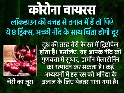 दूध की तरह चेरी के रस में ट्रिप्टोफैन होता है। इसलिए, यह आपके नींद की गुणवत्ता में सुधार, हार्मोन मेलाटोनिन का उत्पादन कर सकता है। कई अध्ययनों में इस रस को अनिद्रा के इलाज के लिए बेहतर माना गया है।