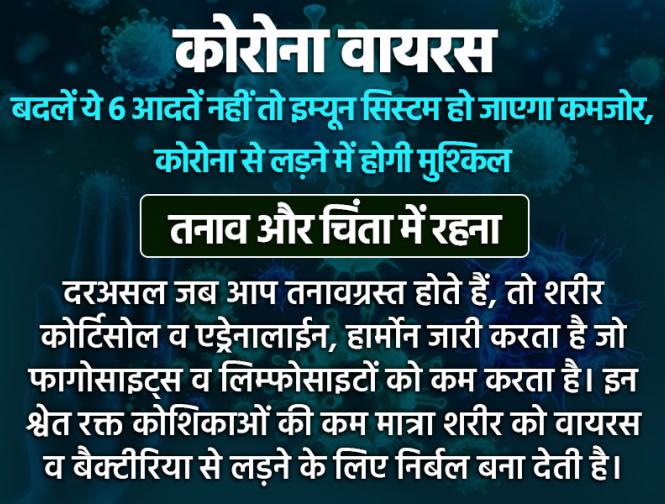 Coronavirus: बदलें ये 6 आदतें नहीं तो इम्यून सिस्टम हो जाएगा कमजोर, कोरोना से लड़ने में होगी मुश्किल