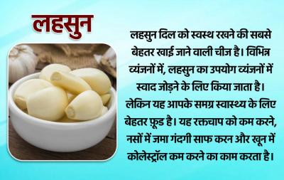 लहसुन दिल को स्वस्थ रखने की सबसे बेहतर खाई जाने वाली चीज है। विभिन्न व्यंजनों में, लहसुन का उपयोग व्यंजनों में स्वाद जोड़ने के लिए किया जाता है। लेकिन यह आपके समग्र स्वास्थ्य के लिए बेहतर फ़ूड है। यह रक्तचाप को कम करने, नसों में जमा गंदगी साफ करन और खून में कोलेस्ट्रॉल कम करने का काम करता है।