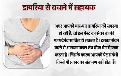 अगर आपको बार-बार डायरिया की समस्या हो रही है, तो इस पेस्ट का सेवन काफी फायदेमंद साबित हो सकता हैं। इसका सेवन करने से आपका पाचन तंत्र ठीक ढंग से काम करता हैं। जिसके कारण आपको पेट संबंधी किसी भी प्रकार का संक्रमण नहीं होता हैं।