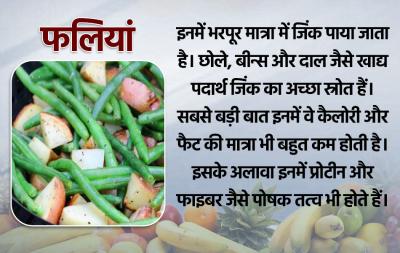 इनमें भरपूर मात्रा में जिंक पाया जाता है। छोले, बीन्स और दाल जैसे खाद्य पदार्थ जिंक का अच्छा स्रोत हैं। सबसे बड़ी बात इनमें वे कैलोरी और फैट की मात्रा भी बहुत कम होती है। इसके अलावा इनमें प्रोटीन और फाइबर जैसे पोषक तत्व भी होते हैं।