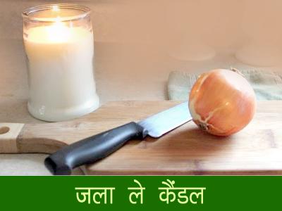 जिस जगह भी प्याज काटने जा रहे हैं उसके पास एक कैंडिल जलाकर रख लें। इससे निकलने वाला धुंआ आपके आस-पास वॉटर-एयर बाउंडरी बना देता है। इसके कारण भी आपके आंख में प्याज का असर कम हो जाता है।