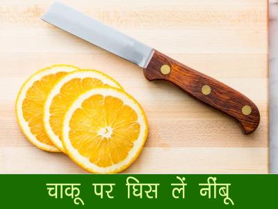 नींबू एक अच्छा तरीका है प्याज की गैस से बचने का। जिस भी चाकू से प्याज काटने जा रहे हों उसपर नींबू रगड़ लें। इसके बाद उससे प्याज काटें। नींबू के रस की वजह से प्याज की गैस आपकी आंखों तक नहीं पहुंच पाती और इससे आपकी आंखों में आंसू नहीं आता।