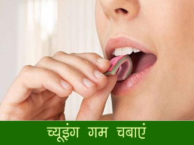 प्याज काटते समय आपको च्यूइंग गम चबाते रहना चाहिए। इसका कारण ये है कि च्यूइंग गम की वजह से आप मुंह से सांस लेने लगेंगे और प्याज से निकल रही गैस अन्दर कम जाएगी और आपको आंसू भी कम आएंगें।