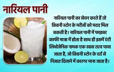 नारियल पानी का सेवन करते हैं तो किडनी स्टोन के मरीजों को मदद मिल सकती है। नारियल पानी में फाइबर काफी मात्रा में होता है साथ ही इसमें एंटी लिथोजेनिक नामक एक खास तत्व पाया जाता है, जो किडनी स्टोन के दर्द से निजात दिलाने में कारगर माना जाता है।