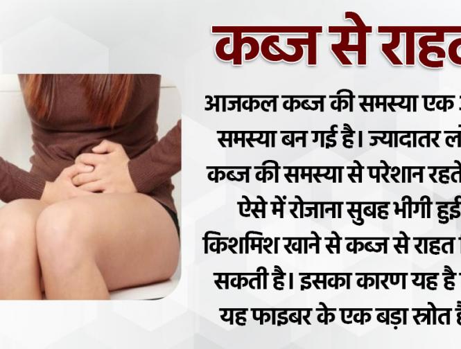 आजकल कब्ज की समस्या एक आम समस्या बन गई है। ज्यादातर लोग कब्ज की समस्या से परेशान रहते हैं। ऐसे में रोजाना सुबह भीगी हुई किशमिश खाने से कब्ज से राहत मिल सकती है। इसका कारण यह है कि यह फाइबर के एक बड़ा स्रोत है।