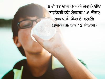 9 से 17 साल तक के लड़के और लड़कियों को रोजाना 2.5 लीटर तक पानी पीना है जरूरी। (इसका मतलब 12 गिलास)