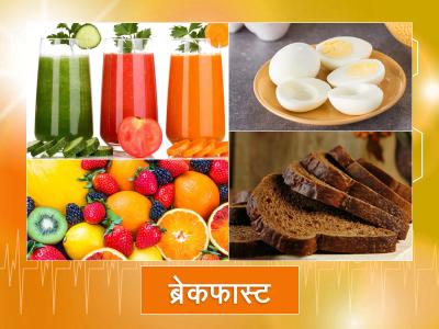 उनके ब्रेकफास्ट में फल, वाइट एग, ब्राउन ब्रेड, फ्रूट जूस या प्रोटीन शेक होता है।
