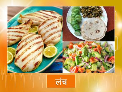 उनके लंच में रोटी सलाद, दाल, चिकन ग्रिल्ड या मछली शामिल होता है।
