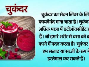 1 / 6चुकंदर का सेवन लिवर के लिए फायदेमंद माना जाता है। चुकंदर में अधिक मात्रा में एंटीऑक्सीडेंट होते हैं। जो हमारे शरीर से वसा को कम करने में मदद करता है। चुकंदर को हम सलाद या सब्जी के रूप में इस्तेमाल कर सकते हैं।2 / 6लीवर को स्वस्थ रखने के लिए पालक का सेवन करना चाहिए। पालक को लीवर के साथ-साथ हमारी आंखों के लिए भी फायदेमंद माना जाता है। पालक में विटामिन-ए और ग्लूटाथिओन नामक एंटीऑक्सीडेंट होते हैं। जो लीवर को स्वस्थ रखने में मदद कर सकता है।3 / 6हल्दी में भड़काऊ और ऑक्सीडेटिव गुण होते हैं। जो तनाव को कम करता है और लीवर को किसी भी तरह की बीमारियों से बचाता है। हल्दी को सेहत के लिए बहुत फायदेमंद माना जाता है।4 / 6गाजर में एंटी-ऑक्सीडेंट गुण होते हैं। जो लिवर को स्वस्थ रखने में मदद करता है। इसमें विटामिन, खनिज गुण भी होते हैं। आप गाजर का उपयोग सलाद या जूस के रूप में कर सकते हैं।5 / 6ग्रीन टी पीना सेहत के लिए फायदेमंद माना जाता है। ग्रीन टी वजन कम करने के साथ ही लीवर को स्वस्थ रखने में मदद करती है। ग्रीन टी में मौजूद एंटी-ऑक्सीडेंट की उच्च मात्रा के कारण, यह शरीर से बुरी चीजों को हटाने में मदद कर सकता है।6 / 6एवोकैडो में एंटी-इंफ्लेमेटरी और एंटी-ऑक्सीडेंट गुण होते हैं। जो लीवर को नुकसान से बचाने का काम कर सकता है। एवोकाडो को सेहत के लिए बहुत फायदेमंद माना जाता है।