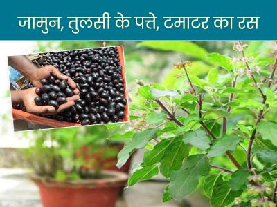 4) जामुन, तुलसी के पत्ते, टमाटर का रस : मुंह के छाले खत्म करने के लिए जामुन के पत्ते लें। इन्हें धोकर पीसें। छानें। इस पानी (रस) से कुल्ले करें। इस रोग से छुटकारा पाने के लिए टमाटर का रस निकालें। इस रस में इतनी ही मात्रा में पानी मिलाएं। इस पानी से कुल्ला करें। आराम होगा। तुलसी की ताजा पांच पत्तियां लें। इन्हें धोएं। चबाएं। खूब बारीक चबाकर निगलें। इसपर पानी तीन-चार घूंट धीरे-धीरे पी लें। आराम आयेगा।
