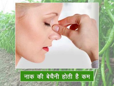 मिर्च गर्मी पैदा करने वाली चीज है, जो नाक के वायुमार्ग को साफ करती है और बंद नाक के कारण होने वाली परेशानी को कम करती है।