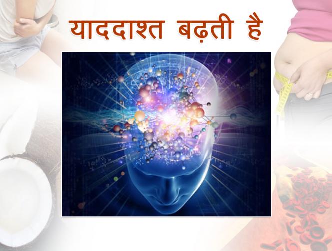 नारियल खाने से याददाशत बढ़ती है। इसके लिए नारियल की गिरी में बादाम, अखरोट और मिश्री मिलाकर हर रोज खाएं।