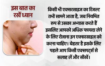 किसी भी एक्सरसाइज का रिजल्ट तभी सामने आता है, जब नियमित रूप से उसका अभ्यास करते हैं इसलिए आपको अधिक फायदा लेने के लिए रोजाना इन एक्सरसाइज को करना चाहिए। बेहतर है इसके लिए पहले आप किसी एक्सपर्ट्स से सलाह लें और सीखें।