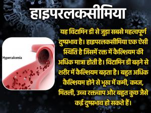 1 / 6यह विटामिन डी से जुड़ा सबसे महत्वपूर्ण दुष्प्रभाव है। हाइपरलकसीमिया एक ऐसी स्थिति है जिसमें रक्त में कैल्शियम की अधिक मात्रा होती है। विटामिन डी बढ़ने से शरीर में कैल्शियम बढ़ता है। बहुत अधिक कैल्शियम होने से भूख में कमी, कब्ज, मितली, उच्च रक्तचाप और बहुत कुछ जैसे कई दुष्प्रभाव हो सकते हैं।2 / 6बहुत अधिक विटामिन डी किडनियों की बीमारियों का खतरा बढ़ा सकता है। अध्ययन के अनुसार, पहले से किडनियों की बीमारियों वाले लोगों को अपनी डाइट में विटामिन डी की खुराक शामिल करने से पहले डॉक्टर से परामर्श करना चाहिए।3 / 6शरीर में विटामिन डी और कैल्शियम बढ़ने से पेट दर्द, कब्ज और दस्त जैसे कई पाचन समस्याएं हो सकती हैं। ये अन्य स्वास्थ्य मुद्दों के संकेत भी हो सकते हैं, इसलिए यदि आप कोई सप्लीमेंट ले रहे हैं, तो अपने चिकित्सक को जरूर बताएं।4 / 6हड्डी के स्वास्थ्य के लिए विटामिन डी बहुत जरूरी है। लेकिन इस विटामिन की बहुत अधिक मात्रा आपकी हड्डियों को नकारात्मक रूप से प्रभावित कर सकती है। अपनी हड्डियों को इष्टतम स्वास्थ्य में रखने के लिए, निर्धारित मात्रा में कैल्शियम और विटामिन डी का सेवन करें।5 / 6शरीर में अत्यधिक कैल्शियम से मतली, उल्टी और भूख कम लगती है। अध्ययनों ने शरीर में बहुत अधिक कैल्शियम होने से कई दुष्प्रभावों का सामना करना पड़ा सकता है।6 / 6कोरोना वायरस ऐसे लोगों को ज्यादा प्रभावित करता है जिनके शरीर में विटामिन डी की कमी होती है। यह बात 20 यूरोपीय देशों में कोविड-19 के मरीजों को लेकर किये गए एक अध्ययन में सामने आई है। इन देशों में तेजी से बढ़ते मामलों और मृतकों की संख्या का एक बड़ा कारण वहां के लोगों के शरीर में विटामिन डी है।