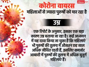 1 / 6मममिया की एक रिपोर्ट के अनुसार, इसका एक बड़ा कारण उम्र बताया जा रहा है। कई अध्ययन में यह दावा किया जा चुका है कि महिलाएं भी पुरुषों की तुलना में औसतन छह साल अधिक जीवित रहती हैं, इसलिए कमजोर आबादी में पुरुषों की तुलना में अधिक बुजुर्ग महिलाएं हैं।2 / 6अन्य प्रमुख कारक पुरानी बीमारियां जैसे हृदय रोग, मधुमेह और कैंसर है। ये सभी महिलाओं की तुलना में पुरुषों में अधिक आम हैं, जो इसके लिए जिम्मेदार हो सकते हैं। अब सवाल यह है कि पुरुषों को इन बीमारियों की अधिक संभावना क्यों है? 3 / 6एक आशंका यह भी है कि इसकी एक वजह महिलाओं के मुकाबले पुरुषों में लंबे समय तक धूम्रपान की आदत हो सकती है। चीन में दुनिया में धूम्रपान करने वालों की सबसे बड़ी आबादी है। दुनिया के धूम्रपान करने वालों में से लगभग एक तिहाई लोग चीन में हैं। लेकिन पुरुषों के के मुकाबले सिर्फ 2 प्रतिशत चीनी महिलाएं धूम्रपान करती हैं। 4 / 6वैज्ञानिकों का कहना है कि कुछ जैविक कारक भी इसके लिए जिम्मेदार हो सकते हैं जिसमें महिला सेक्स हार्मोन एस्ट्रोजन भी शामिल है, जो प्रतिरक्षा में बड़ी भूमिका निभाता है। यह तथ्य कि महिलाओं में दो एक्स गुणसूत्र होते हैं, जिसमें प्रतिरक्षा संबंधी जीन होते हैं। जाहिर है पुरुषों में केवल एक गुणसूत्र होता है।5 / 6चीन के पुरुषों में महिलाओं की तुलना में टाइप 2 डायबिटीज और हाई ब्लड प्रेशर के मामले अधिक हैं। यह दोनों कारक कोरोनो वायरस की जटिलताओं के जोखिम को बढ़ाते हैं। चीन में पुरुषों में पुरानी फेफड़े की बीमारी की दर महिलाओं की तुलना में लगभग दोगुनी है।6 / 6वैज्ञानिकों का कहना है कि वर्तमान महामारी में पुरुषों के खिलाफ कई कारक काम कर सकते हैं। इनमें कुछ ऐसे हैं जो जैविक हैं और कुछ जो जीवनशैली से जुड़े हैं। वैज्ञानिक मानते हैं कि यौन संबंध बनाने की वजह से अधिक पुरुषों का इम्यून सिस्टम वायरस के खिलाफ बेहतर तरीके से रेस्पोंस नहीं कर पाता है।