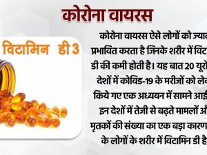 1 / 7कोरोना वायरस ऐसे लोगों को ज्यादा प्रभावित करता है जिनके शरीर में विटामिन डी की कमी होती है। यह बात 20 यूरोपीय देशों में कोविड-19 के मरीजों को लेकर किये गए एक अध्ययन में सामने आई है। इन देशों में तेजी से बढ़ते मामलों और मृतकों की संख्या का एक बड़ा कारण वहां के लोगों के शरीर में विटामिन डी है।2 / 7यदि आप सामान्य रूप से पीठ के निचले हिस्से में दर्द या हड्डियों में दर्द महसूस कर रहे हैं तो आपको विटामिन डी का स्तर कम हो सकता है। विटामिन डी आपके शरीर को कैल्शियम में ले जाने के तरीके को बेहतर बनाने में मदद करता है, जो स्वस्थ दांतों और हड्डियों के लिए आवश्यक है। विटामिन डी कमी के कारण आपके जोड़ों, हड्डियों और मांसपेशियों में दर्द हो सकता है।3 / 7विटामिन डी आपकी प्रतिरक्षा प्रणाली को मजबूत बनाने के लिए जरूरी है। अध्ययनों से पहले पता चला है कि विटामिन डी श्वसन संक्रमण से बचाने में मदद कर सकता है। विटामिन डी आपके शरीर में उन कोशिकाओं के साथ काम करता है जो संक्रमण से लड़ते हैं और यदि आप लगातार सर्दी या फ्लू से पीड़ित रहते हैं, तो इसका मतलब हो सकता है कि आपके शरीर में विटामिन डी की कमी हो गई है।4 / 7विटामिन डी इस तरह से एक महत्वपूर्ण भूमिका निभाता है कि कैल्शियम सिस्टम में अवशोषित हो जाता है। यदि आपकी हड्डियां कैल्शियम और अन्य खनिजों को खो देती हैं, तो आप हड्डियों में फ्रैक्चर और टूटने के लिए अधिक संवेदनशील होंगे। विटामिन डी रक्त के स्तर को बनाए रखने में भी मदद करता है और आपके सिस्टम में पर्याप्त विटामिन होने से फ्रैक्चर का खतरा कम हो जाएगा।5 / 7पिछले अध्ययनों से पता चला है कि शरीर में खून की कमी के कारण आपको हमेशा थकान महसूस हो सकती है। न्यूकैसल विश्वविद्यालय के विशेषज्ञों द्वारा पहले किए गए शोध में पाया गया कि विटामिन डी ऊर्जा के स्तर को बढ़ावा देने के लिए साबित हुआ है। यह भी पाया गया कि विटामिन डी सप्लीमेंट लेने से मांसपेशियों के कार्य में सुधार हो सकता है।6 / 7पुराने वयस्कों में विटामिन डी की कमी को अवसाद से जोड़ा गया है। शोधकर्ताओं ने अपने पुराने वर्षों में लोगों पर विटामिन डी की भूमिका का विश्लेषण किया और पाया कि जिन 65 प्रतिशत लोगों में अवसाद के लक्षण दिखाई दिए उनमें विटामिन का स्तर भी कम था। कम ऊर्जा का स्तर होने से आप डंप में भी महसूस कर सकते हैं और यह विटामिन डी की कमी के कारण भी होता है।7 / 7विटामिन डी की कमी होने पर आपके घाव और कटने वाली जगह को ठीक होने में अधिक समय लग सकता है। विटामिन डी सूजन को नियंत्रित करने और संक्रमण से लड़ने में एक भूमिका निभाता है, यह दोनों पर्याप्त चिकित्सा के लिए आवश्यक हैं। डॉक्टरों के एक अध्ययन में पाया गया कि पैर के अल्सर वाले जिन रोगियों को विटामिन डी के साथ इलाज किया गया