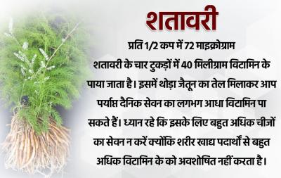 शतावरी के चार टुकड़ों में 40 मिलीग्राम विटामिन के पाया जाता है। इसमें थोड़ा जैतून का तेल मिलाकर आप पर्याप्त दैनिक सेवन का लगभग आधा विटामिन पा सकते हैं। ध्यान रहे कि इसके लिए बहुत अधिक चीजों का सेवन न करें क्योंकि शरीर खाद्य पदार्थों से बहुत अधिक विटामिन के को अवशोषित नहीं करता है।
