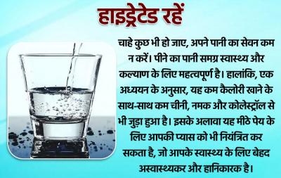 चाहे कुछ भी हो जाए, अपने पानी का सेवन कम न करें। पीने का पानी समग्र स्वास्थ्य और कल्याण के लिए महत्वपूर्ण है। हालांकि, एक अध्ययन के अनुसार, यह कम कैलोरी खाने के साथ-साथ कम चीनी, नमक और कोलेस्ट्रॉल से भी जुड़ा हुआ है। इसके अलावा यह मीठे पेय के लिए आपकी प्यास को भी नियंत्रित कर सकता है, जो आपके स्वास्थ्य के लिए बेहद अस्वास्थ्यकर और हानिकारक है।