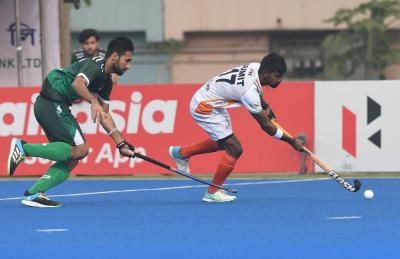 पाकिस्तान के खिलाफ भारत ने 11 पेनल्टी कॉर्नर बनाये जिनमें से दो पर ही गोल हो सके । भारत ने पहले मिनट में हरमनप्रीत सिंह के गोल की मदद से बढत बना ली । इसके बाद सुमित (45वां मिनट), वरूण कुमार (53वां मिनट) और आकाशदीप सिंह (57वां मिनट) ने गोल दागे ।
