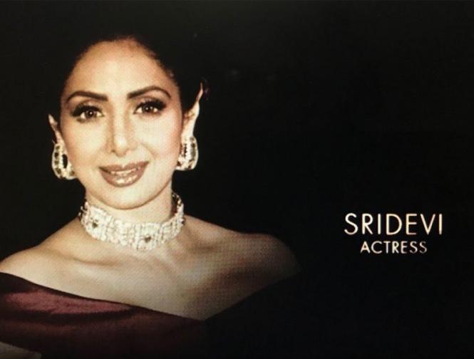 लॉस एंजलेस में चल रहे इवेंट के दौरान 'इन मेमोरियम' सेक्शन में श्रीदेवी को श्रद्धांजलि दी गई।