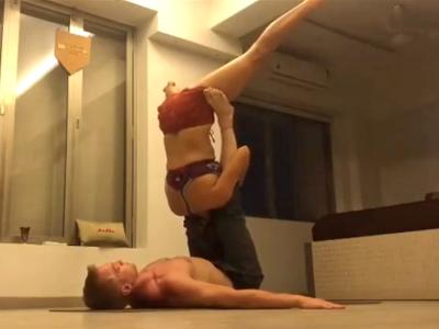 एक वीडियो में आशका एक्रोयोगा करती नजर आ रही हैं।