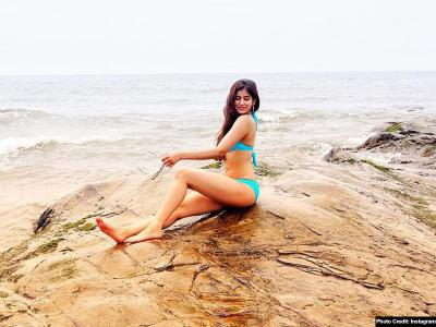 स्काई ब्लू बिकनी में बहुत की सेक्सी लग रही हैं साक्षी।
