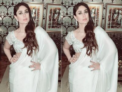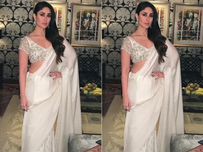 करीना इस सफेद कलर की साड़ी में बेहद बोल्ड और स्टाइलिश लुक में नजर आ रही हैं।