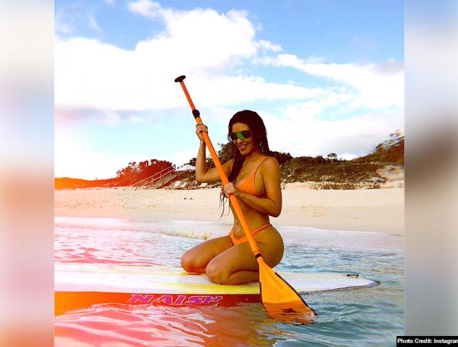 हॉलीवुड एक्ट्रेस किम कर्दाशियां ने बीच पर नाव चलाने वाली तस्वीर अपने इंस्टा अकाउंट पर शेयर की।