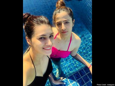 कृति सेनन इन तस्वीरों में अपनी बहन के साथ स्वीमिंग पूल में एन्जॉय करती दिख रही हैं।