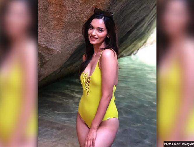 पीले रंग के इस स्विमसूट में मानुषी काफी सुंदर लग रही हैं।