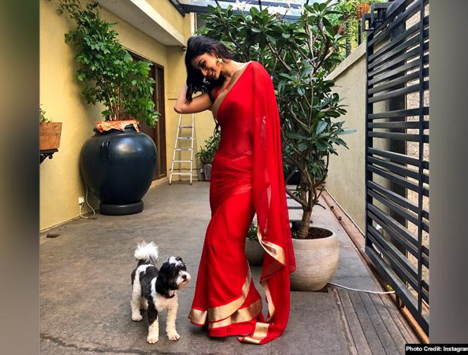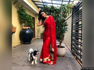 लाल साड़ी में कहर बरपा रही हैं मौनी रॉय, देखें हॉट तस्वीरें