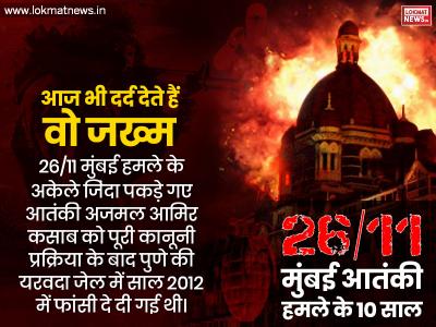26/11 मुंबई हमले के अकेले जिंदा पकड़े गए आतंकी अजमल आमिर कसाब को पूरी कानूनी प्रक्रिया के बाद पुणे की यरवदा जेल में साल 2012 में फांसी दे दी गई थी।
