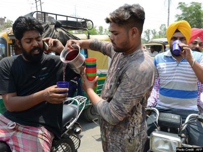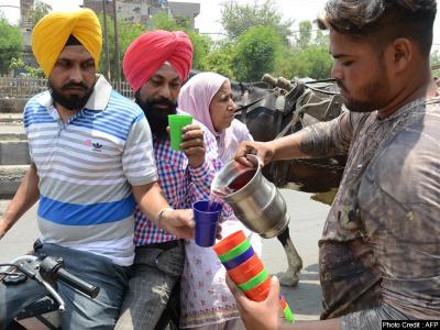 जगह जगह पर भारतीय स्वयंसेवक ने 2 जून, 2019 को अमृतसर में पड़ रही गर्मी के दिन में मीठे पानी का वितरण किया है। उत्तरी भारत में तापमान 50 डिग्री सेल्सियस (122 फ़ारेनहाइट) तक पहुंचने के कारण हीटस्ट्रोक और पानी की कमी हो रही है।