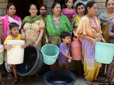 2 जून, 2019 को अमृतसर में नियमित रूप से पानी की आपूर्ति की मांग को लेकर नगर निगम और राज्य सरकार के खिलाफ विरोध प्रदर्शन करते हुए भारतीय निवासियों ने खाली बाल्टियां रखीं।