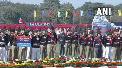 रैली के दौरान प्रधानमंत्री ने 1000 NCC कैडेट्स के मार्च पास्ट की सलामी ली। (फोटो: ट्विटर)