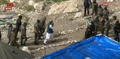see pics, अमरनाथ पहुंचे रक्षा मंत्री, CDS और सेनाध्यक्ष, पवित्र गुफा के दर्शन किए, बर्फ़ानी बाबा की जय