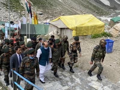 रक्षा मंत्री राजनाथ सिंह जम्मू-कश्मीर के दौरे पर हैं। आज राजनाथ सिंह अमरनाथ यात्रा पर पहुंचे हैं, यहां उन्होंने बाबा बर्फानी के दर्शन किए, साथ ही सुरक्षा इंतजामों का जायजा भी लिया। इससे पहले शुक्रवार को राजनाथ सिंह लद्दाख पहुंचे थे।
