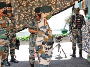 1 / 8थलसेना प्रमुख जनरल एम एम नरवणे ने सोमवार को अंतराष्ट्रीय सीमा (आईबी) के पास अग्रिम इलाकों का दौरा किया और जम्मू-पठानकोट क्षेत्र में तैनात सैनिकों की तैयारियों और सुरक्षा स्थिति की समीक्षा की। यह जानकारी एक रक्षा प्रवक्ता ने दी। 2 / 8सुरक्षा स्थिति की समीक्षा के लिए कठुआ, सांबा, जम्मू और पठानकोट सहित राइजिंग स्टार कोर की कमान में आने वाले क्षेत्रों का दौरा किया। प्रवक्ता ने बताया कि पश्चिमी कमान के जनरल ऑफिसर कमांडिंग-इन-चीफ लेफ्टिनेंट जनरल आरपी सिंह, राइजिंग स्टार कोर के जीसीओ लेफ्टिनेंट जनरल उपेंद्र द्विवेदी, जीओसी टाइगर डिवीजन मेजर जनरल वीबी नायर और एयरफोर्स स्टेशन जम्मू के एयर ऑफिसर कमांडिंग (एओसी) एयर कमोडोर एएस पठानिया ने थलसेना प्रमुख की अगवानी की। 3 / 8लेफ्टिनेंट जनरल द्विवेदी ने परिचालन संबंधी तैयारियों, सुरक्षा बुनियादी ढांचे के उन्नयन और आंतरिक सुरक्षा मामलों के संबंध में जनरल नरवणे को जानकारी दी। प्रवक्ता ने बताा कि थलसेना प्रमुख ने जीओसी टाइगर डिवीजन के साथ अग्रिम क्षेत्रों में परिचालन तैयारियों की समीक्षा की।4 / 8इस दौरान विभिन्न अधिकारियों और जवानों के साथ बातचीत की। थलसेना प्रमुख ने संघर्ष विराम का पाकिस्तान द्वारा उल्लंघन और आतंकवादियों द्वारा घुसपैठ के प्रयासों को कतई बर्दाश्त नहीं करने की नीति पर जोर दिया।5 / 8जोर दिया कि सेनाओं और सरकार की सभी एजेंसियाँ मिलकर अथक रूप से काम कर रही हैं और दुश्मनों द्वारा छेड़े जा रहे छद्म युद्ध के नापाक मंसूबे को नाकाम करने के लिए वे ऐसा करती रहेंगी। थलसेना प्रमुख ने वीडियो कॉन्फ्रेंस के जरिए पश्चिमी कमान के अधिकारियों को संबोधित किया और सैनिकों के मनोबल की प्रशंसा की। उन्होंने देश के दुश्मनों द्वारा किसी भी दुस्साहस को विफल करने और किसी भी स्थिति से निपटने की भारतीय सेना की क्षमताओं पर विश्वास व्यक्त किया। 6 / 8सेना प्रमुख जनरल एमएम नरवणे ने आज पाकिस्तान सीमा पर तैनात सैनिकों की तैयारियों की समीक्षा की। सेना के वरिष्ठ कमांडरों के साथ बैठक में इन तैयारियों पर चर्चा करते हुए नरवणे ने दुश्मन की हर नापाक हरकत का मुंहतोड़ जवाब देने के लिए कहा।7 / 8सीमा की सुरक्षा में तैनात जवानों को इसी तरह डटकर रहने के लिए कहा। नरवणे ने कहा कि पड़ोसी देश पाकिस्तान जम्मू-कश्मीर की शांति को भंग करने के लिए आतंकी घुसपैठ की फिराक में है। हमें उसे कामयाब नहीं होने देना है।8 / 8उन्होंने इस दौरान अपनी जान की परवाह न कर भारतीय सरहदों की रक्षा कर रहे भारतीय जवानों के जोश, जज्बे और राष्ट्रभक्ति की भी सराहना की। सेना प्रमुख जम्मू के दो दिवसीय दौरे पर आए हैं। जम्मू पहुंचते ही उन्होंने टाइगर डिवीजन में 16 कोर सहित सेना के अन्य वरिष्ठ अधिकारियों क