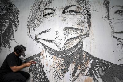 कोरोना में कला: कलाकारों ने दीवारों पर पेंटिंग्स बनाकर योद्धाओं को दिया सम्मान, देखें तस्वीरें