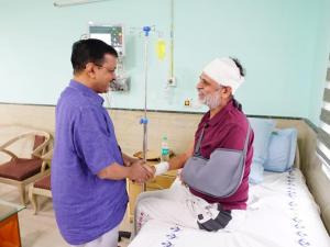 1 / 6आम आदमी पार्टी (आप) के संयोजक और दिल्ली के मुख्यमंत्री अरविंद केजरीवाल ने रविवार को अस्पताल में भर्ती पार्टी के नेता सत्येंद्र जैन से मुलाकात की और उन्हें ''बहादुर व्यक्ति'' तथा ''नायक'' बताया। (फोटो: ट्विटर)2 / 6पिछले साल मई में धनशोधन के एक मामले में ईडी द्वारा गिरफ्तार किए जाने के बाद से तिहाड़ जेल में बंद जैन को उच्चतम न्यायालय ने चिकित्सा आधार पर पिछले शुक्रवार को छह सप्ताह की अंतरिम जमानत दी थी। (फोटो: ट्विटर)3 / 6पार्टी सूत्रों ने बताया था कि पिछले बृहस्पतिवार को चक्कर आने के कारण जेल में गिर जाने के बाद उन्हें अस्पताल में भर्ती कराया गया था। (फोटो: ट्विटर)4 / 6केजरीवाल ने जैन के साथ अपनी मुलाकात की तस्वीरें ट्विटर पर साझा करते हुए लिखा, “बहादुर व्यक्ति, नायक से मुलाकात।” 5 / 6पूर्व स्वास्थ्य मंत्री जैन को पहले दीन दयाल उपाध्याय अस्पताल में भर्ती कराया गया था, और बाद में सांस लेने में तकलीफ के कारण उन्हें लोक नायक जयप्रकाश (एलएनजेपी) अस्पताल भेज दिया गया था। (फोटो: ट्विटर)6 / 6उच्चतम न्यायालय ने शुक्रवार को जैन को उनकी पसंद के अस्पताल में इलाज कराने की अनुमति दी थी। अदालत ने जैन को अंतरिम जमानत अवधि के दौरान मीडिया से बात नहीं करने का भी निर्देश दिया है। जैन की अंतरिम जमानत अवधि 11 जुलाई को समाप्त होगी। (फोटो: ट्विटर)