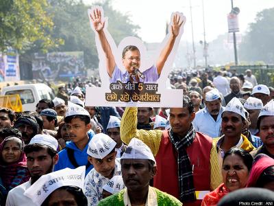 शपथ ग्रहण समारोह मेें पहुंचे आम आदमी पार्टी के समर्थक और प्रशंसक।