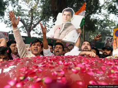 कांग्रेस कार्यकर्ताओं ने राजस्थान और छत्तीसगढ़ में पार्टी के अच्छे प्रदर्शन के लिए मुख्यालय पर जश्न मनाया।