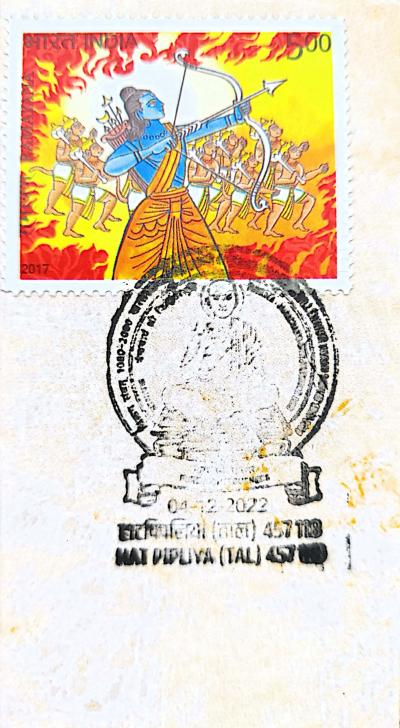 Ayodhya Ram Mandir Live: युद्ध में श्रीराम धनुष तानते हुए और दस सिरो वाला दशानन रावण के भारतीय डाक टिकट आकर्षण का केन्द्र है।