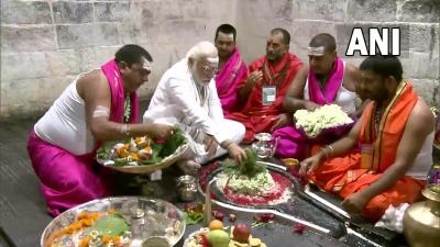ठाकुर ने बताया कि प्रधानमंत्री ने मंदिर के गर्भगृह में भगवान शिव की पूजा की। (सभी फोटोः ani)
