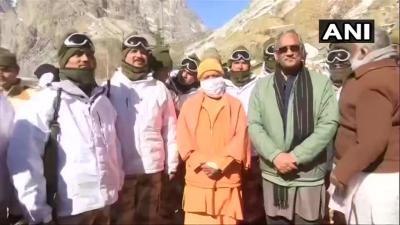चंबोली में ITBP के जवानों से मुलाकात की। केदारनाथ में सोमवार को बर्फ़बारी के कारण घंटों फंसे रहने के चलते अपने तय कार्यक्रम से एक दिन बाद मंगलवार को बदरीनाथ पहुंचे योगी ने भारत—चीन सीमा के समीप भारत तिब्बत सीमा पुलिस (आइटीबीपी) और सेना के सीमांत शिविरों का भी दौरा किया और सैनिकों से भेंट की। उत्तर प्रदेश के मुख्यमंत्री भारत तिब्बत सीमा पर स्थित आखिरी गांव माणा भी गए।