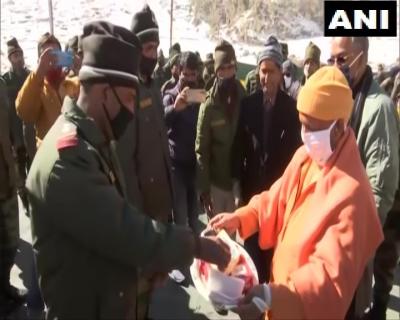 योगी ने कहा, ' आस्था के साथ—साथ राष्ट्रधर्म की एक प्रेरणा जहां से प्राप्त हो रही हो, उस पवित्र स्थल पर भारत के अपने वीर जवानों से मिलने का आनंद ही अलग होता है ।' इससे पहले, दोनों मुख्यमंत्री सुबह चमोली जिले के गौचर से हैलीकॉप्टर द्वारा बदरीनाथ पहुंचे जहां स्थानीय वाद्ययंत्रों के साथ उनकी अगवानी की गयी।