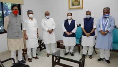 Bihar polls: बिहार पहुंचे जेपी नड्डा, मां पटनदेवी मंदिर में पूजा-अर्चना, सीएम से मिले, see pics